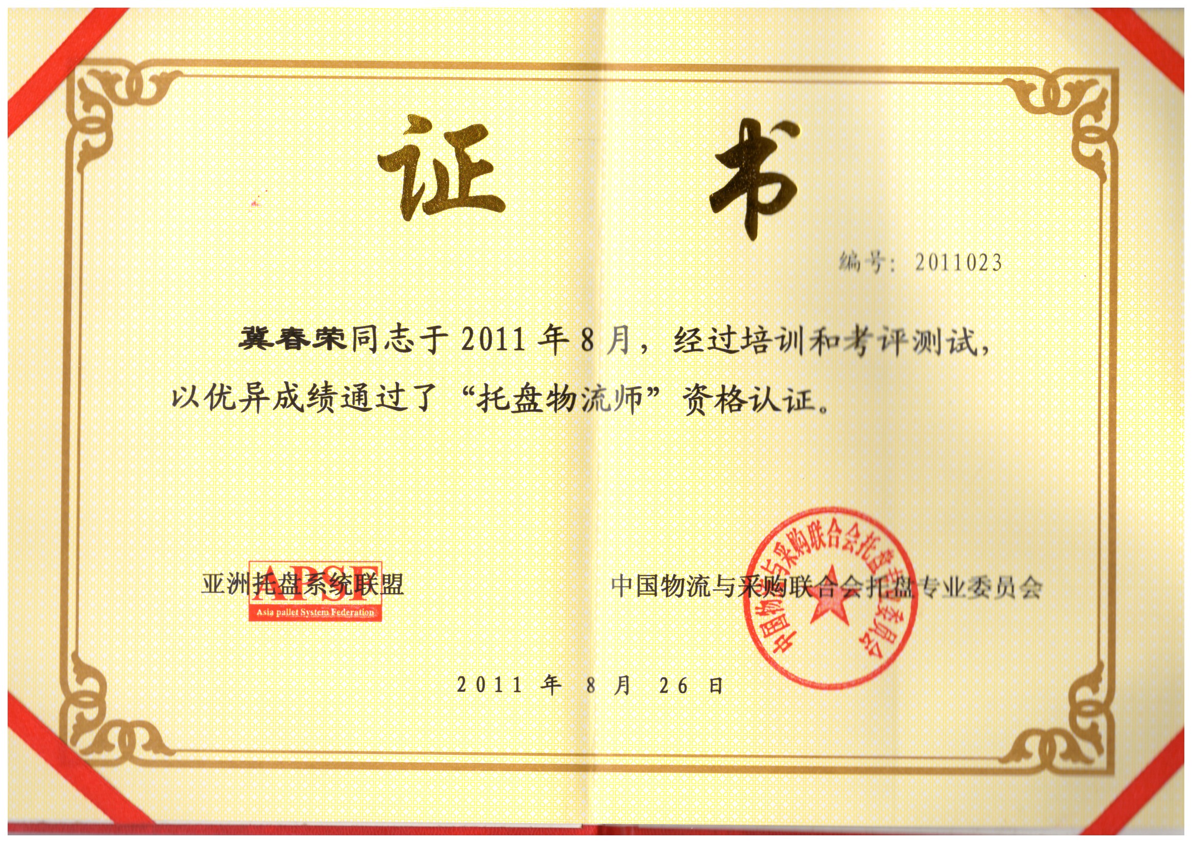 热烈祝贺我司冀春荣同志获得“华亿在线物流师”资格认证。